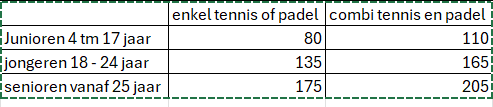 De contributie voor volgend jaar (2026) wordt verhoogd met 5 euro. Dat geeft het volgende overzicht: